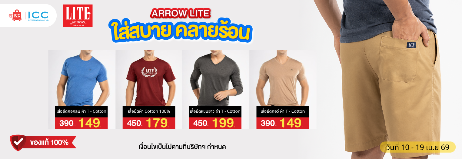 ARROW LITE T-SHIRT เสื้อยืด แขนสั้น คอกลม ไร้ตะเข็บข้าง ใส่แล้วเย็นสบาย ZT301