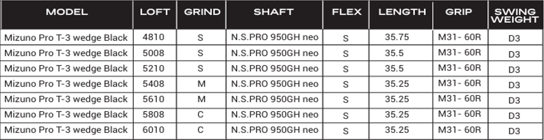มิซูโน่ กอล์ฟ (MIZUNO Golf) (สำหรับผู้ชาย) MIZUNO PRO T-3 WEDGE BLACK N.S.PRO 950 GH NEO