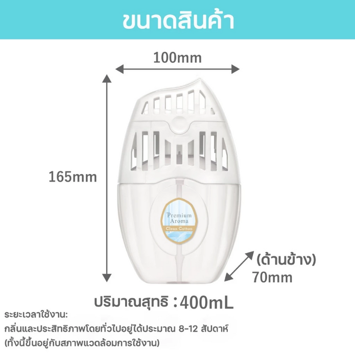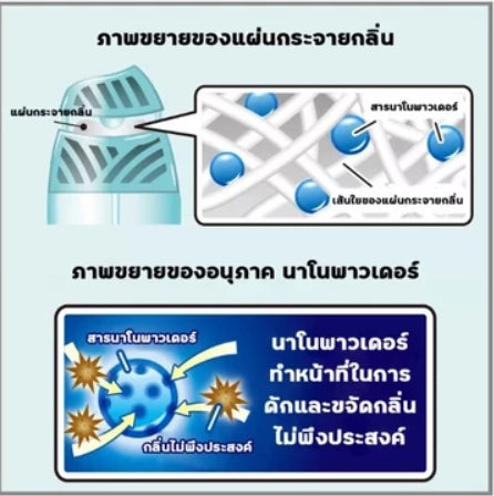 * สารนาโนพาวเดอร์ที่อยู่ในแผ่นกระจายกลิ่น ช่วยขจัดกลิ่นไม่พึงประสงค์ * หัวน้ำหอมที่คัดสรรโดยนักปรุงน้ำหอม ขนาด 400 มล.