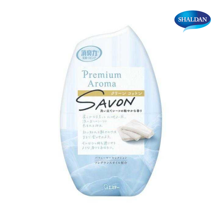 SHALDAN โชชูริกิ พรีเมี่ยมอโรม่า ซาวอน ซีรี่ย์ น้ำหอมปรับอากาศสำหรับห้อง Savon Series กลิ่น Clean Cotton ขนาด 400 มล.