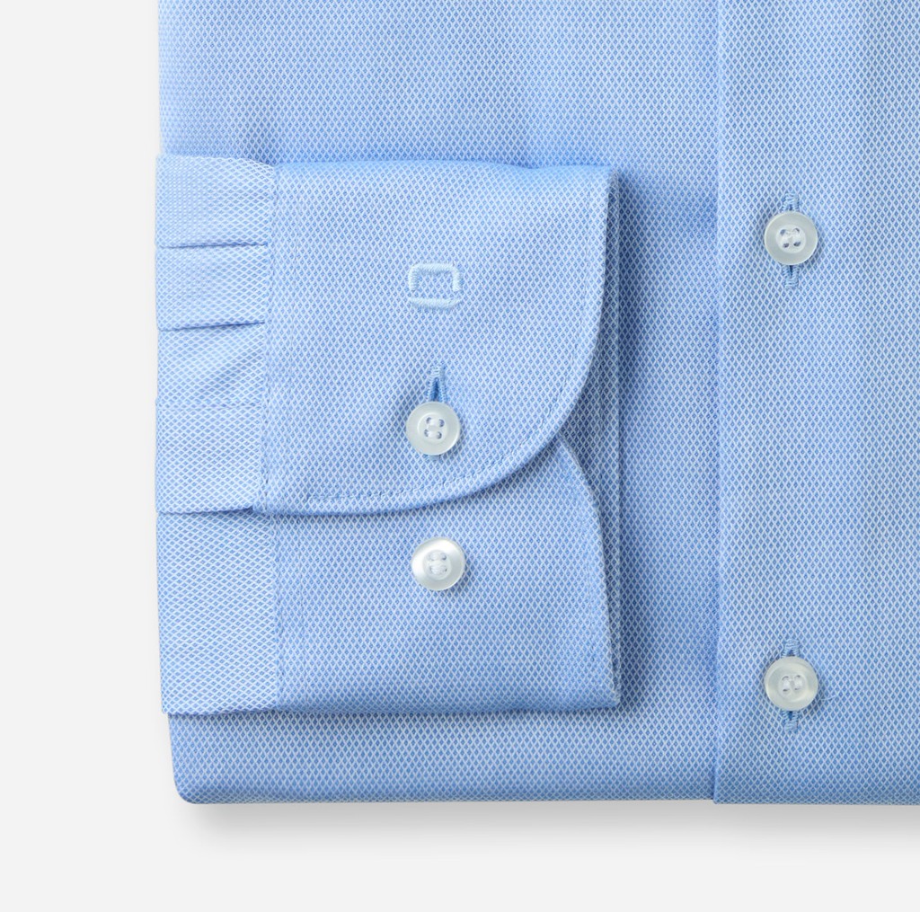 Every aspect of this blue OLYMP Level Five shirt is impressive: from its body-fit cut and fashionable details, right through to its easy-iron properties. Business wear is taken to a new level. The high quality comfort stretch fabric offers maximum freedom of movement – despite the body-fit cut.
