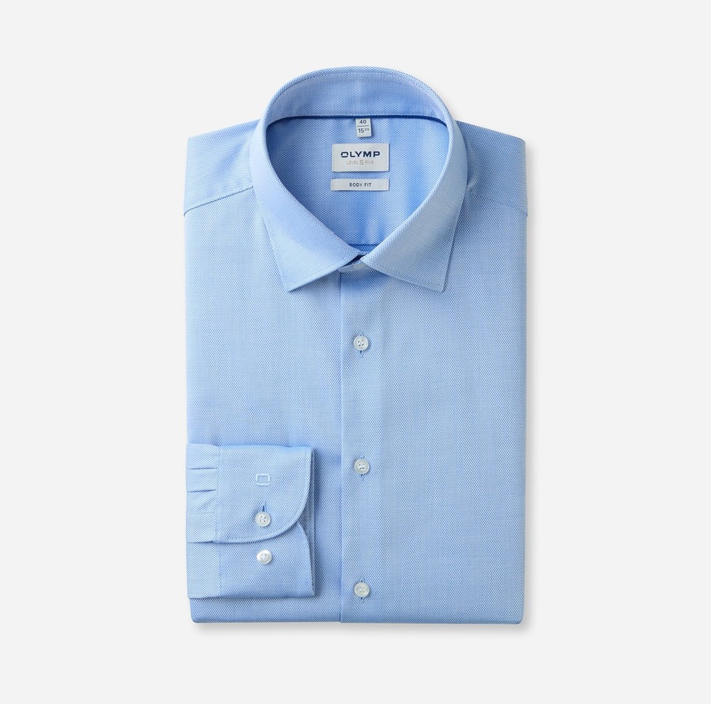เสื้อเชิ้ตสีฟ้า **OLYMP Level Five** รุ่นนี้โดดเด่นในทุกมิติ — ตั้งแต่ทรงเข้ารูป (Body Fit) รายละเอียดดีไซน์ที่หรูหรา ไปจนถึงคุณสมบัติรีดง่ายที่สะดวกต่อการดูแล ยกระดับลุคเสื้อเชิ้ตทำงานให้ดูทันสมัยและมีสไตล์ ผ้าคุณภาพสูงแบบ **Comfort Stretch** ช่วยให้เคลื่อนไหวได้อย่างอิสระสูงสุด แม้จะเป็นทรงเข้ารูปก็ตาม