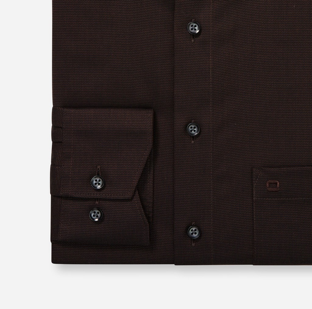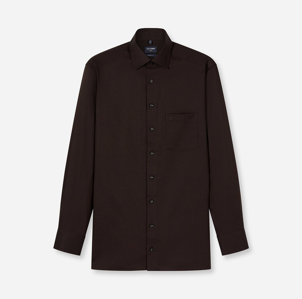 OLYMP LUXOR Shirt เสื้อเชิ้ตผู้ชายแขนยาว ทรงหลวม สีน้ำตาล ผ้าเท็กเจอร์ รีดง่าย ยับยาก (101T2BR) WINT25